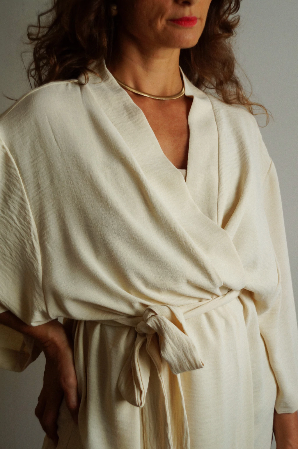 O Kimono Classic com modelagem alongada é uma peça chave no guarda-roupa da mulher moderna, perfeito para dar um toque de estilo e elegância ao visual. Com comprimento midi e confeccionado em crepe rústico de alta qualidade, ele é a escolha perfeita para quem busca sofisticação e conforto em uma única peça.